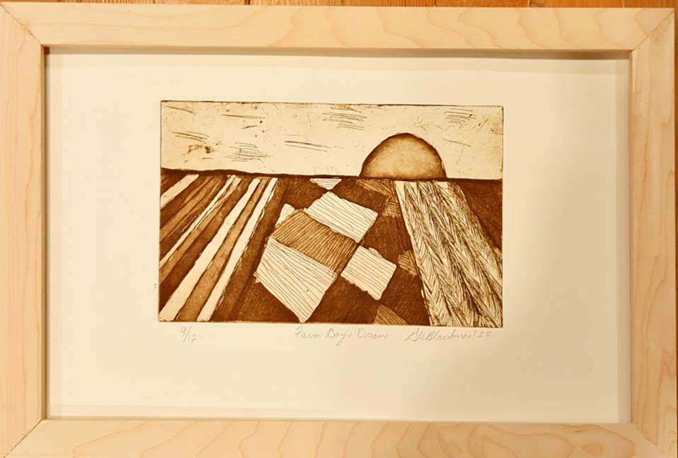 Blackmore finds inspiration in the prairie environment. The lines seen in fields beg a closer look; Gordon wants to use printmaking to give the audience that opportunity.
